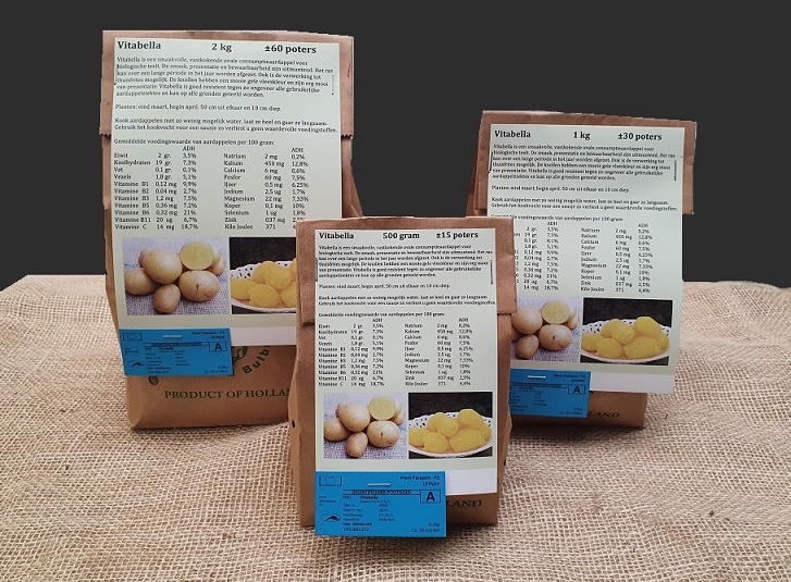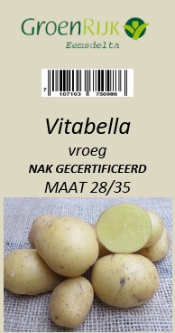 Vitabella is een smaakvolle, vastkokende ovale consumptieaardappel voor biologische teelt. De smaak, presentatie en bewaarbaarheid zijn uitmuntend. Het ras kan over een lange periode in het jaar worden afgezet. Ook is de verwerking tot thuisfrites mogelijk. De knollen hebben een mooie gele vleeskleur en zijn erg mooi van presentatie. Vitabella is goed resistent tegen zo ongeveer alle gebruikelijke aardappelziektes en kan op alle gronden geteeld worden. |
