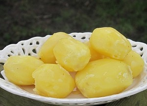 Om de voedingswaarde van de aardappel zo veel mogelijk te behouden is het van belang om de aardappels niet in stukjes te snijden en in zo weinig mogelijk water te garen. Het kookvocht dat overblijft kan weer gebruikt worden voor de jus of een sausje. Op deze manier worden uitgespoelde voedingsstoffen toch nog gebruikt. |